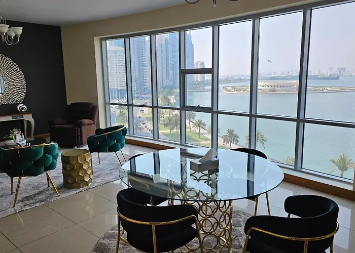 Ofreciendo vistas al lago, el Elegant Rooms In Stylish Apartment se encuentra a 25 minutos a pie de la Aljazeera Park en Sharjah. El apartamento dispone de Wi-Fi y un aparcamiento.